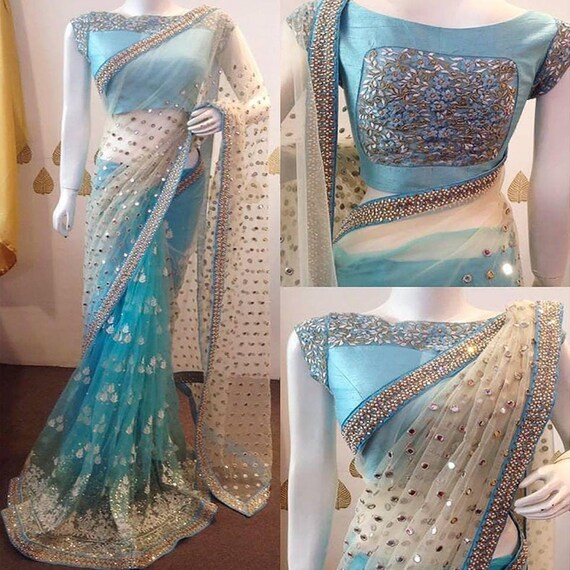 - Sky blue saree party wear clearance
