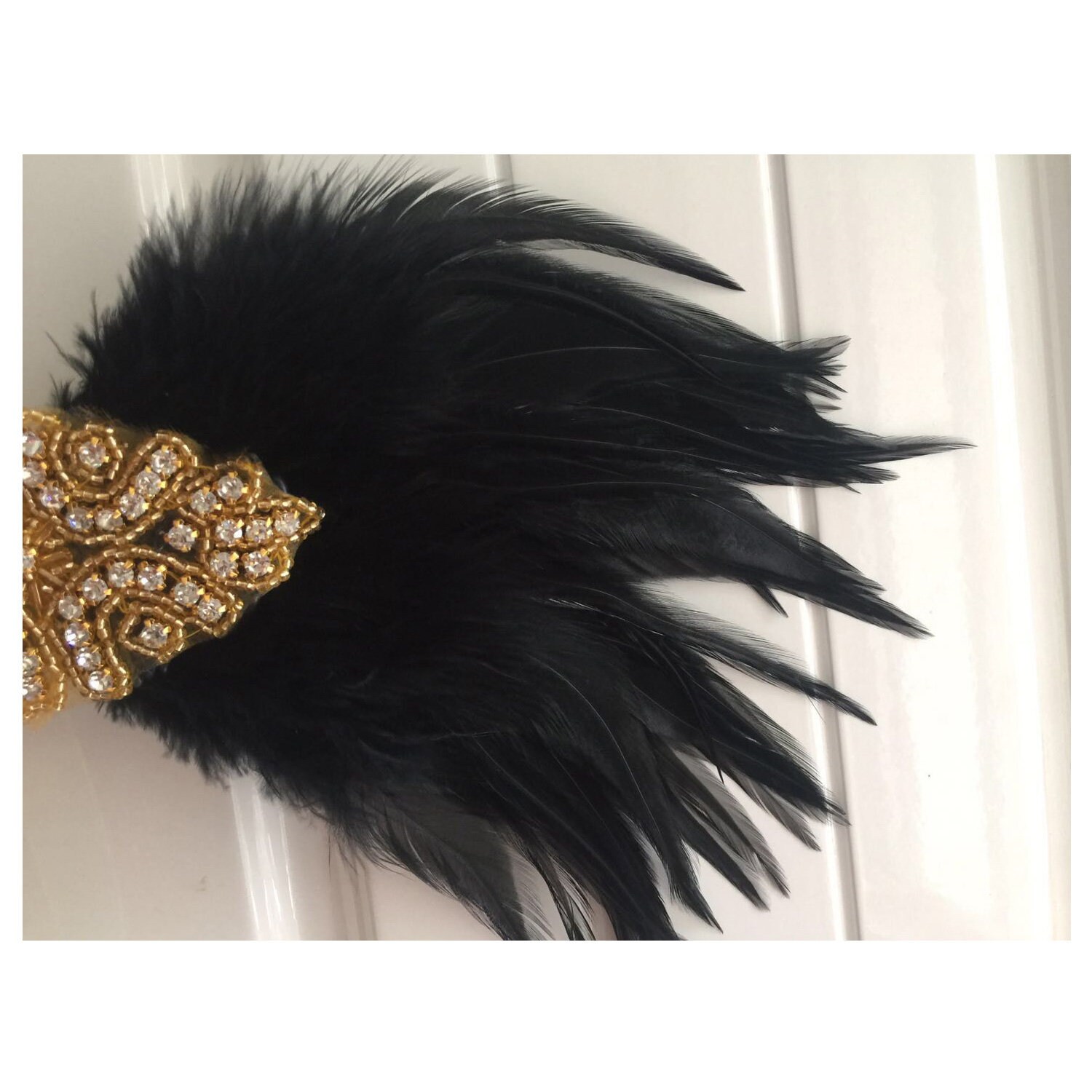 - Black feather headband sale