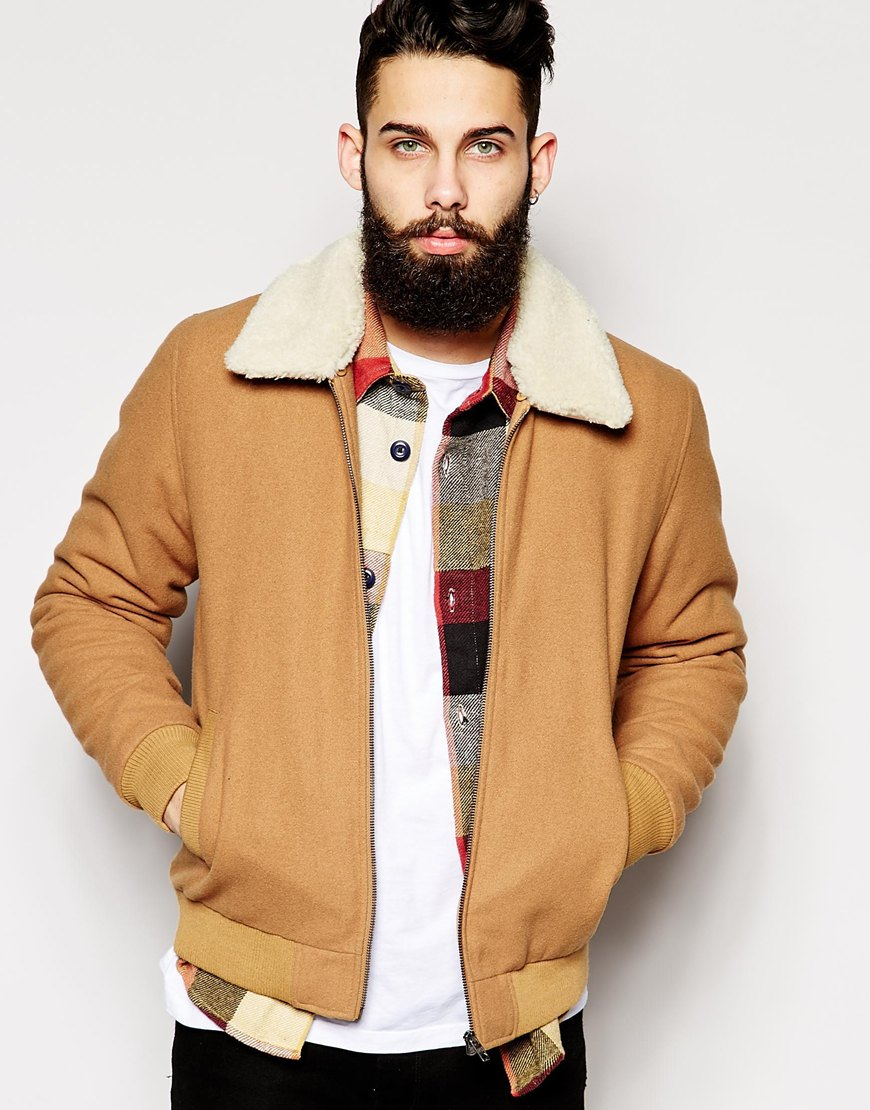 Harrington jacket fur collar clearance, ASOS Wool Harrington Jacket With Faux clearance