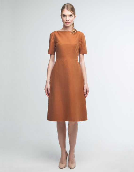 Brown linen dress clearance