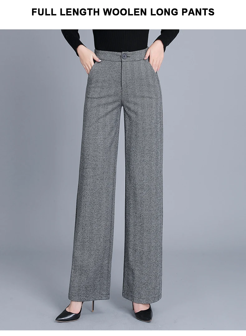 Woolen formal trousers for ladies clearance, Formal Pants Office Work Woolen Wide clearance