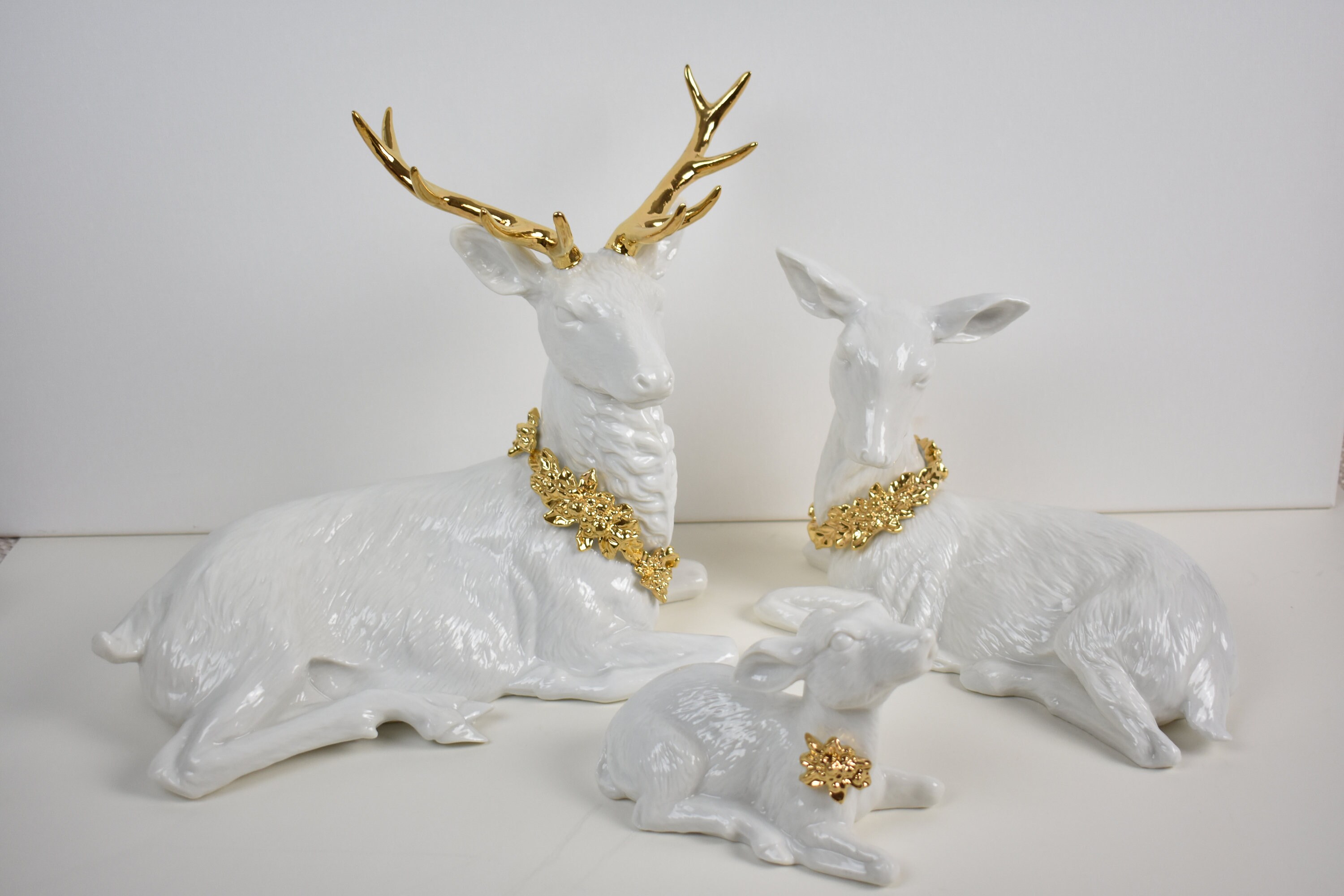 - Three piece porcelain deer family sale online