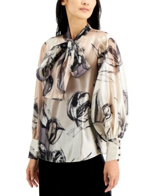 Macys elegant blouses clearance, Alfani Printed Organza Bow Blouse clearance