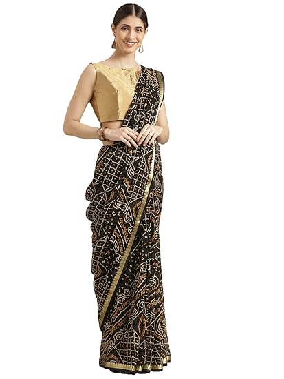 Bandhani black saree clearance