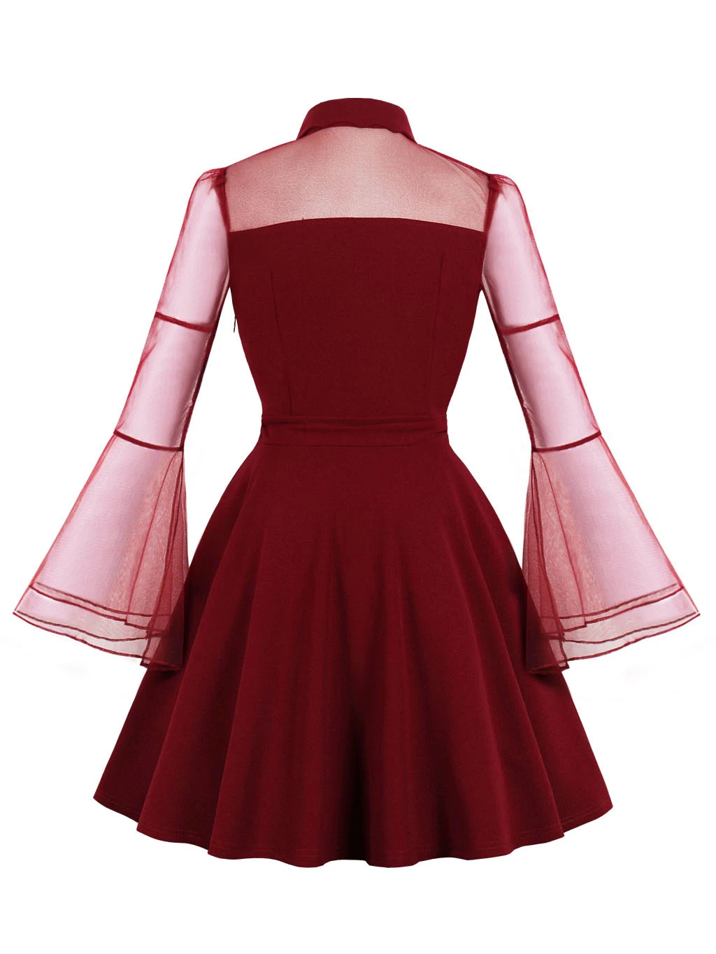 - Cheap 50s mesh yoke flounce sleeve dress