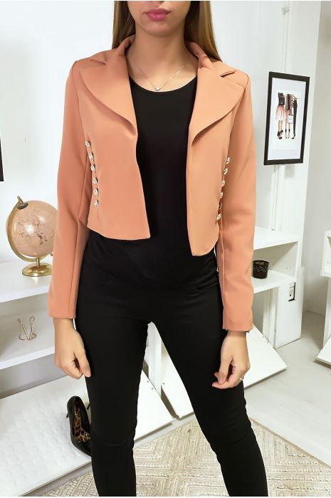 Coral short jacket clearance, Short coral jacket with golden buttons clearance