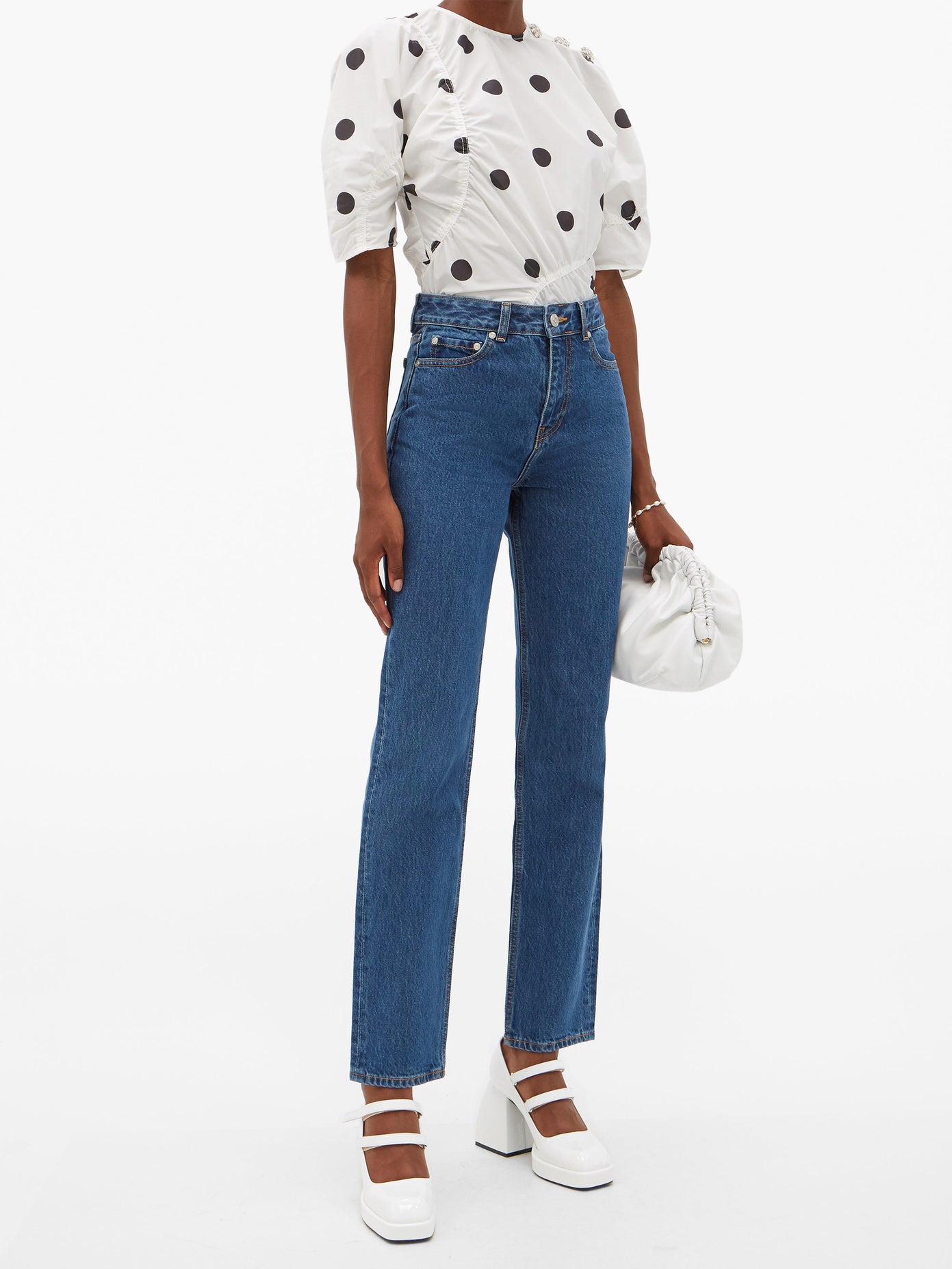 - Ganni high rise straight leg jeans