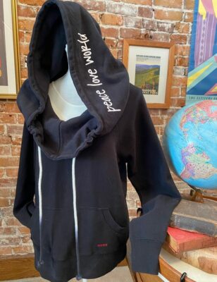 Peace love world cowl neck hoodie with affirmation clearance, Peace Love World Cowl Neck Hoodie clearance