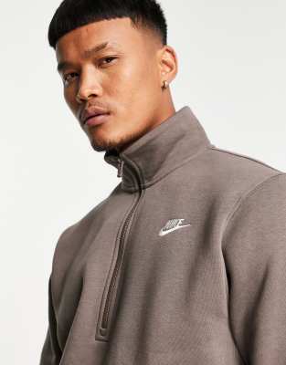 Brown nike half zip clearance, Nike Club half zip sweat in ironstone clearance