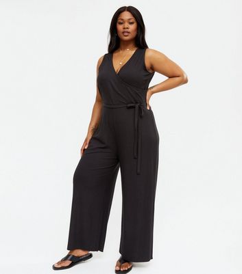 Black curve jumpsuit clearance, ASOS DESIGN curve wrap waist culotte clearance
