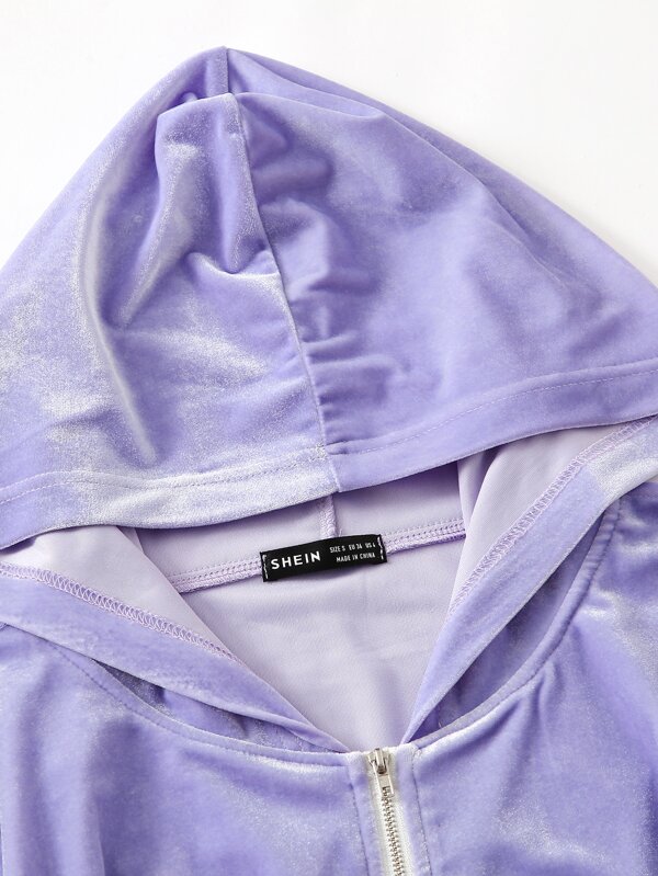 Velvet zip up jacket clearance, SHEIN Zip Up Hooded Velvet Jacket clearance