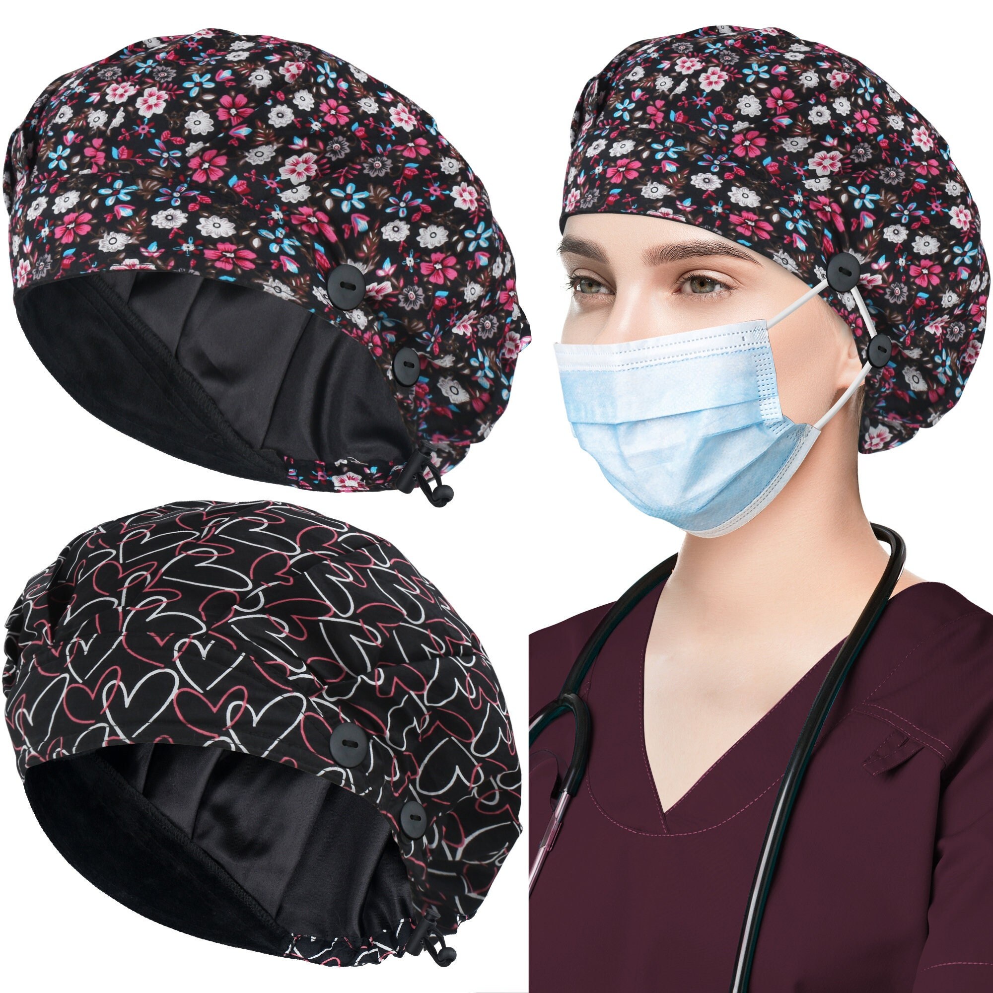 - Satin lined bouffant scrub cap shop