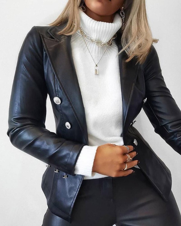 - Double breasted faux leather blazer free shipping