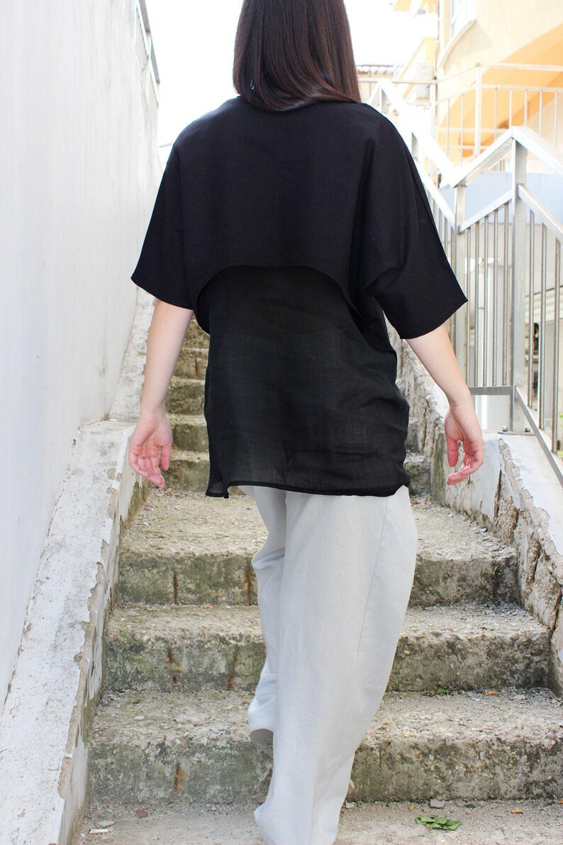 Black linen shirt plus size clearance, Summer Top Linen Tunic Top Loose Top clearance