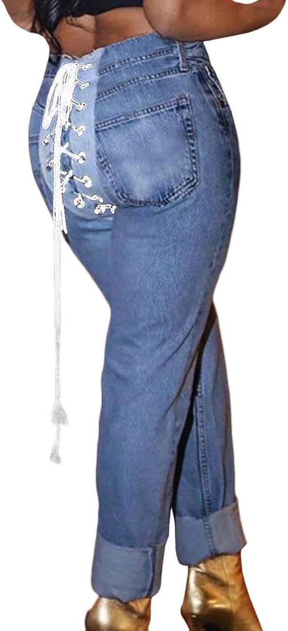 Lace up in the back jeans clearance, xxxiticat Women's Lace Up Denim Pants clearance