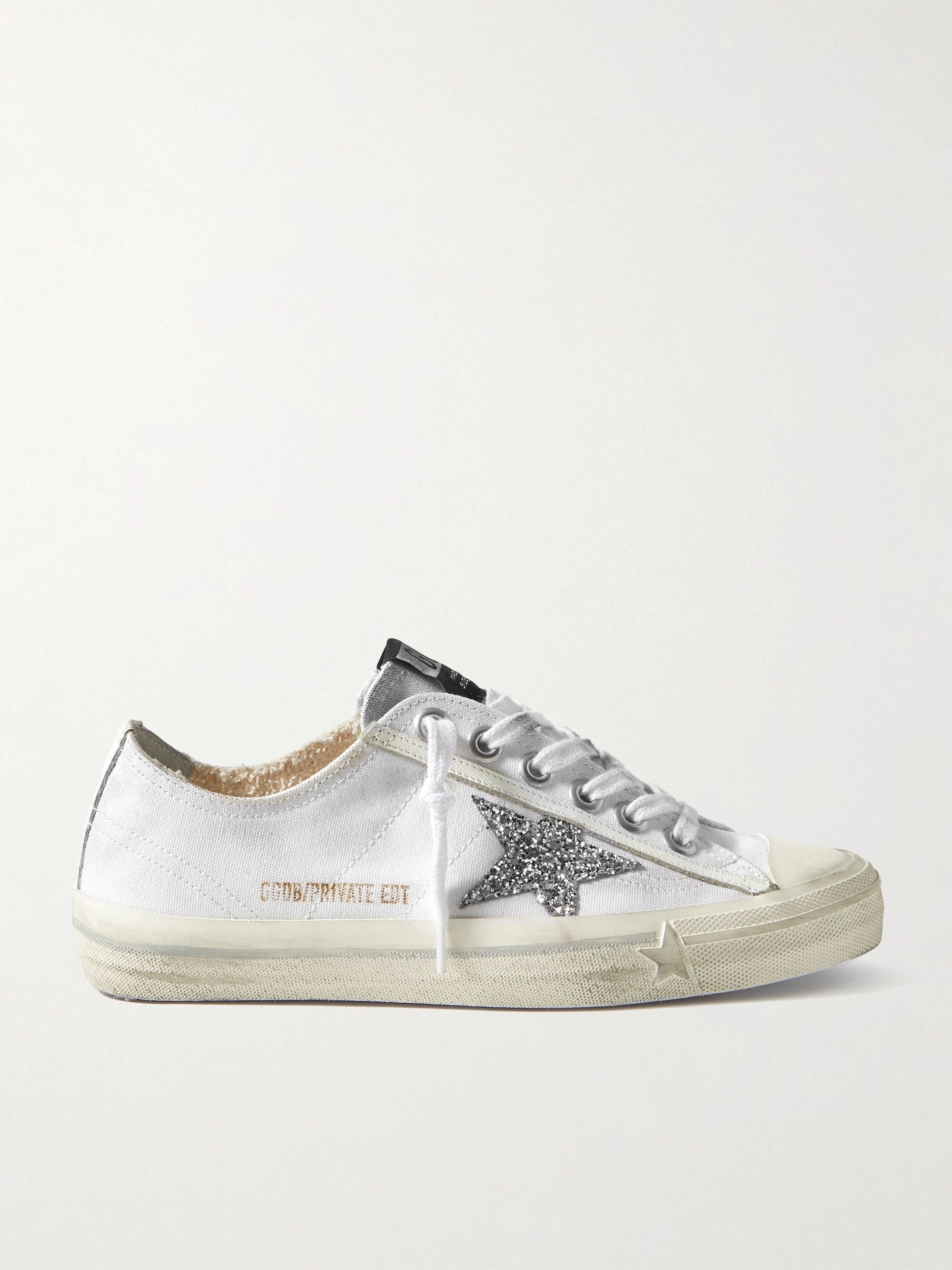 V star golden goose clearance, White V-Star leather-trimmed distressed clearance