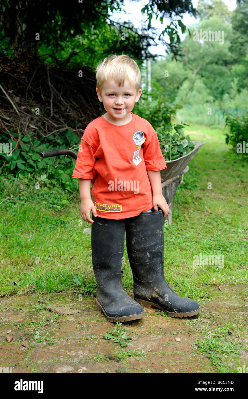 Big boys rubber boots clearance, Child blond boy wearing big fathers clearance