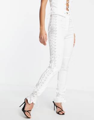 Weiße hose mit schnürung clearance, I Saw It First – Hose in Weiß mit geradem Bein und Schnürung, Kombiteil clearance