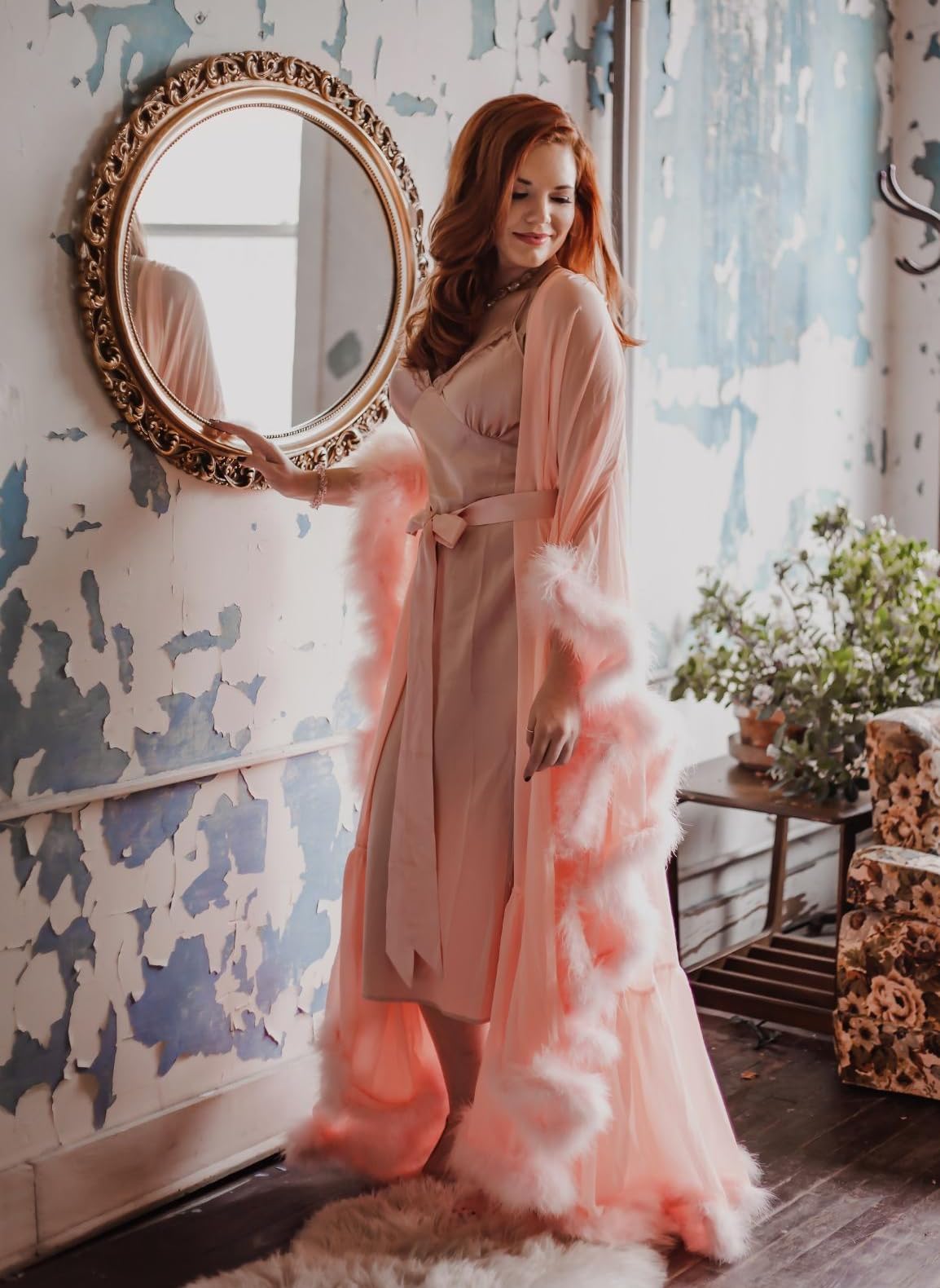 Chiffon feather robe clearance