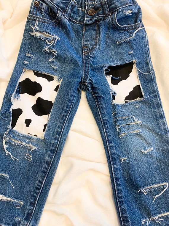 Cow print patch jeans clearance
