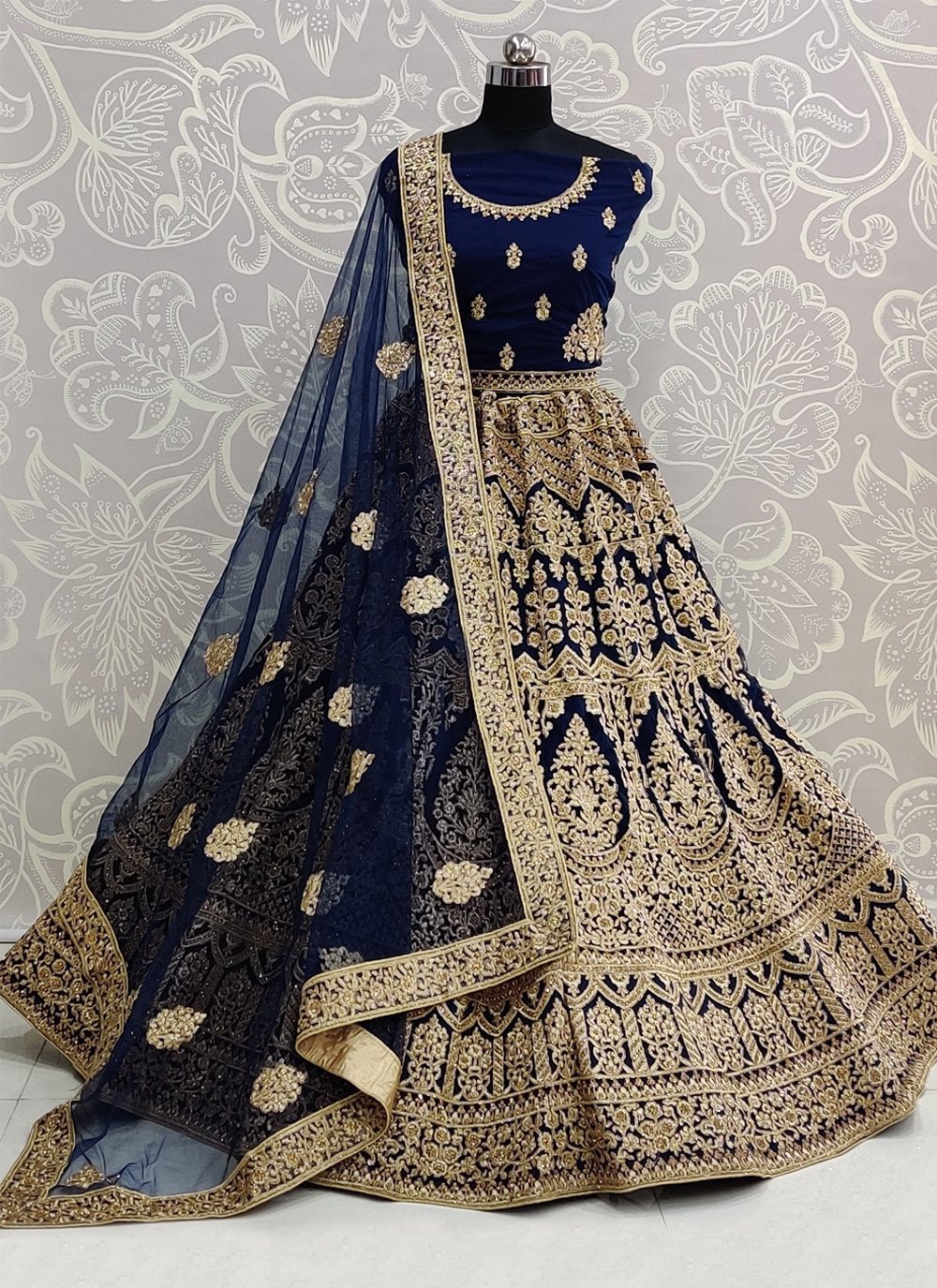 Reception blue bridal lehenga clearance, Blue Velvet Reception A Line Lehenga Choli clearance