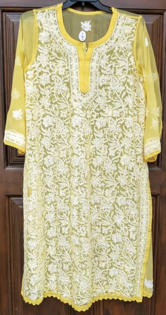 Yellow chiffon kurti clearance