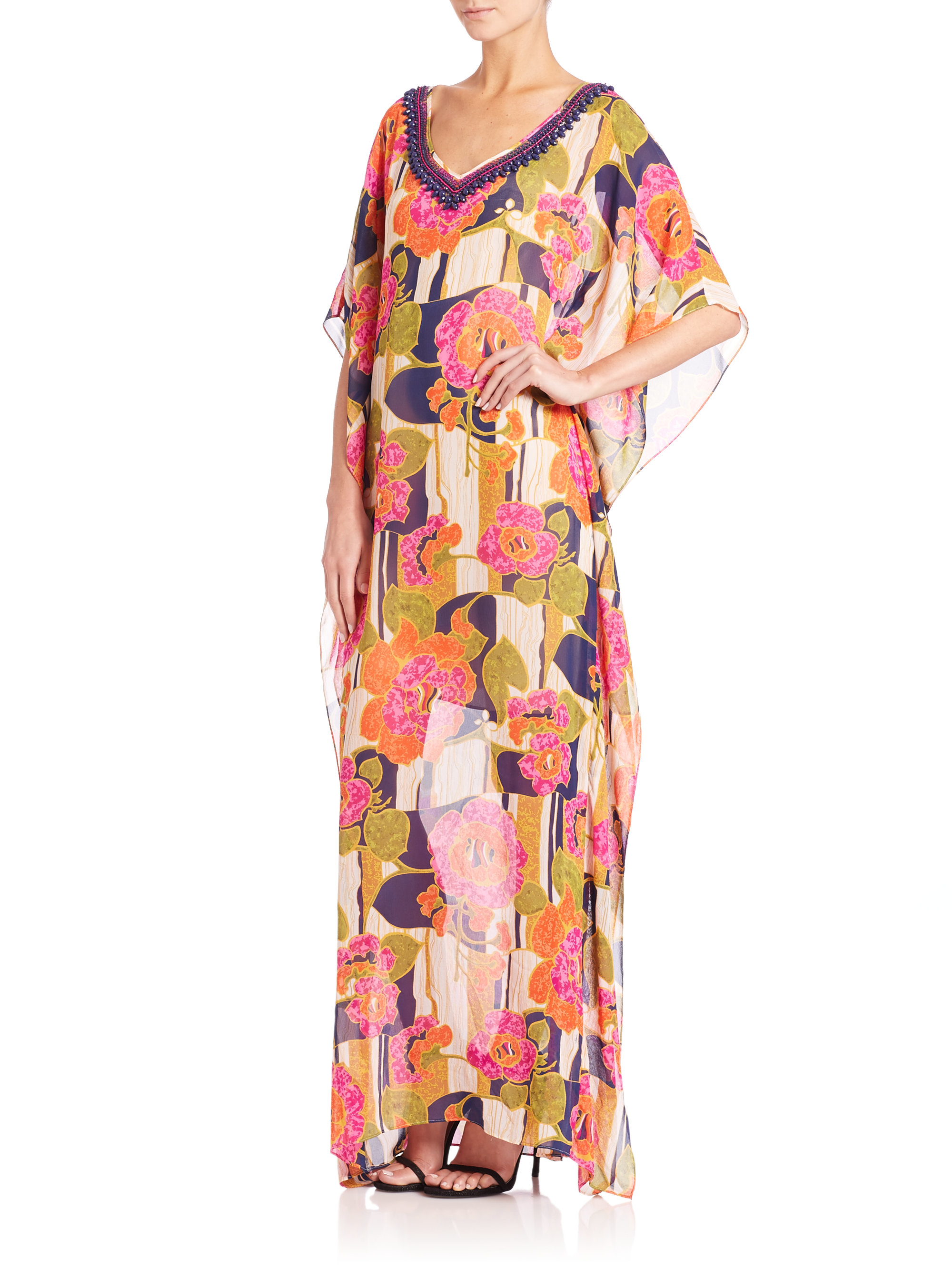 Trina turk caftan clearance, Trina Turk Printed Beaded-neck Caftan clearance