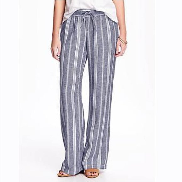 Old navy blue and white striped pants clearance, Tall Blue White Striped Linen Wide Leg clearance