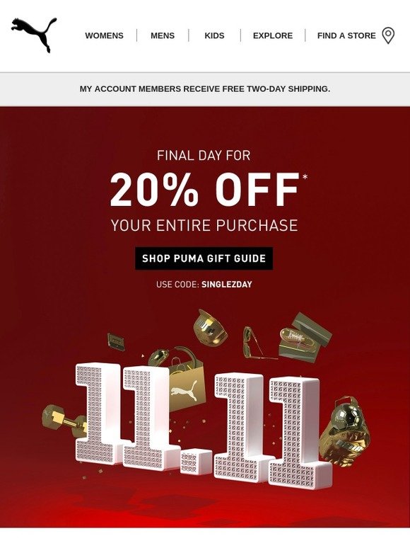 Puma singles day sale clearance, Puma: Final Day for Singles Day Sale clearance