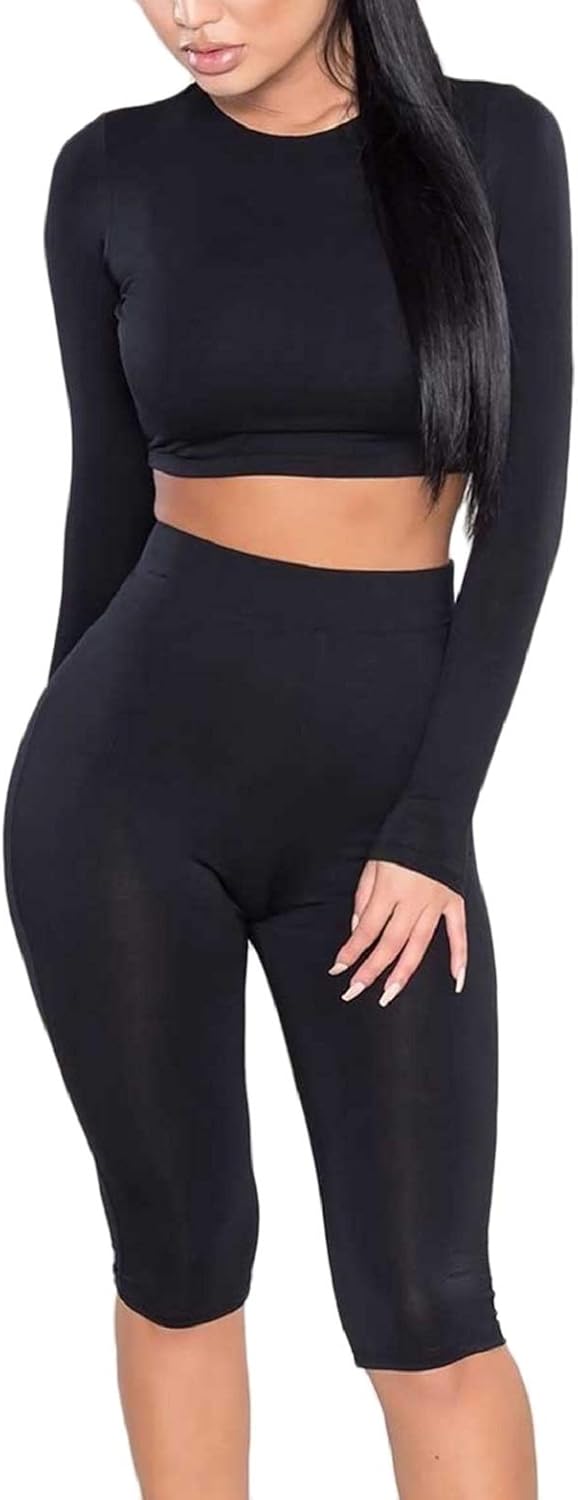 Crop top with high waisted leggings clearance, Amilia Womens Sexy Long Sleeve Crop clearance