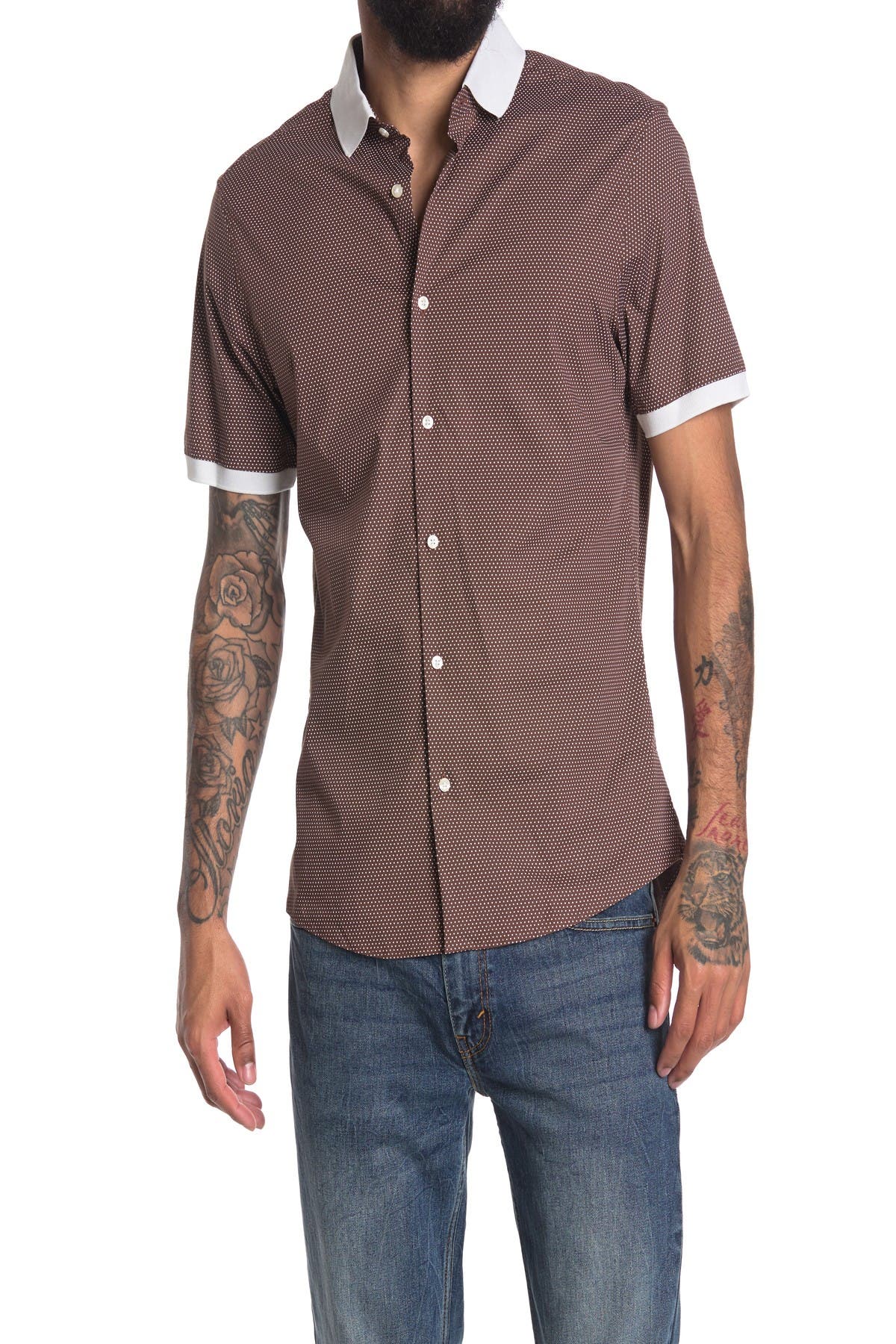 Michael kors men's dress shirts nordstrom rack clearance, Pin Dot Contrast Trim Slim Fit Shirt clearance