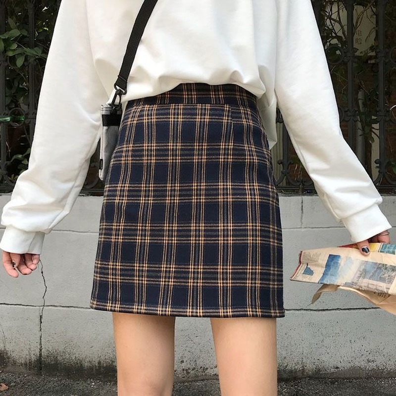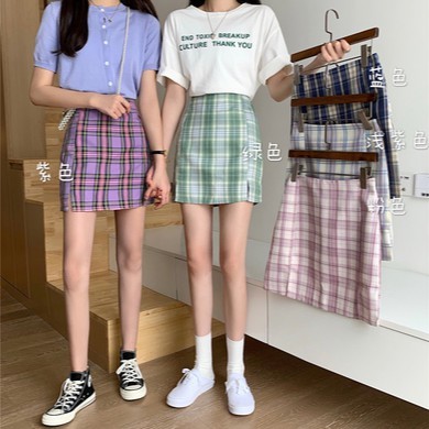 Plaid skirt shopee clearance, Korean Plaid half length, slim high clearance