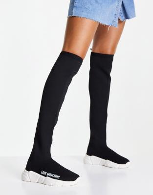 Black sock boots knee high clearance, Love Moschino knee high sock boots in clearance