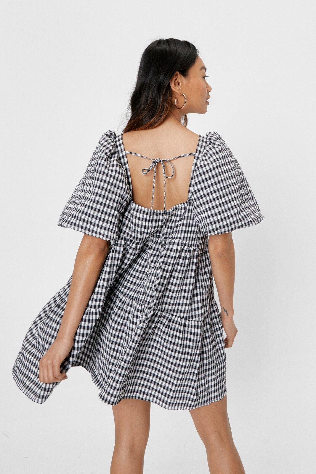 Nasty gal smock dresses clearance, Petite Gingham Print Puff Sleeve Tiered clearance