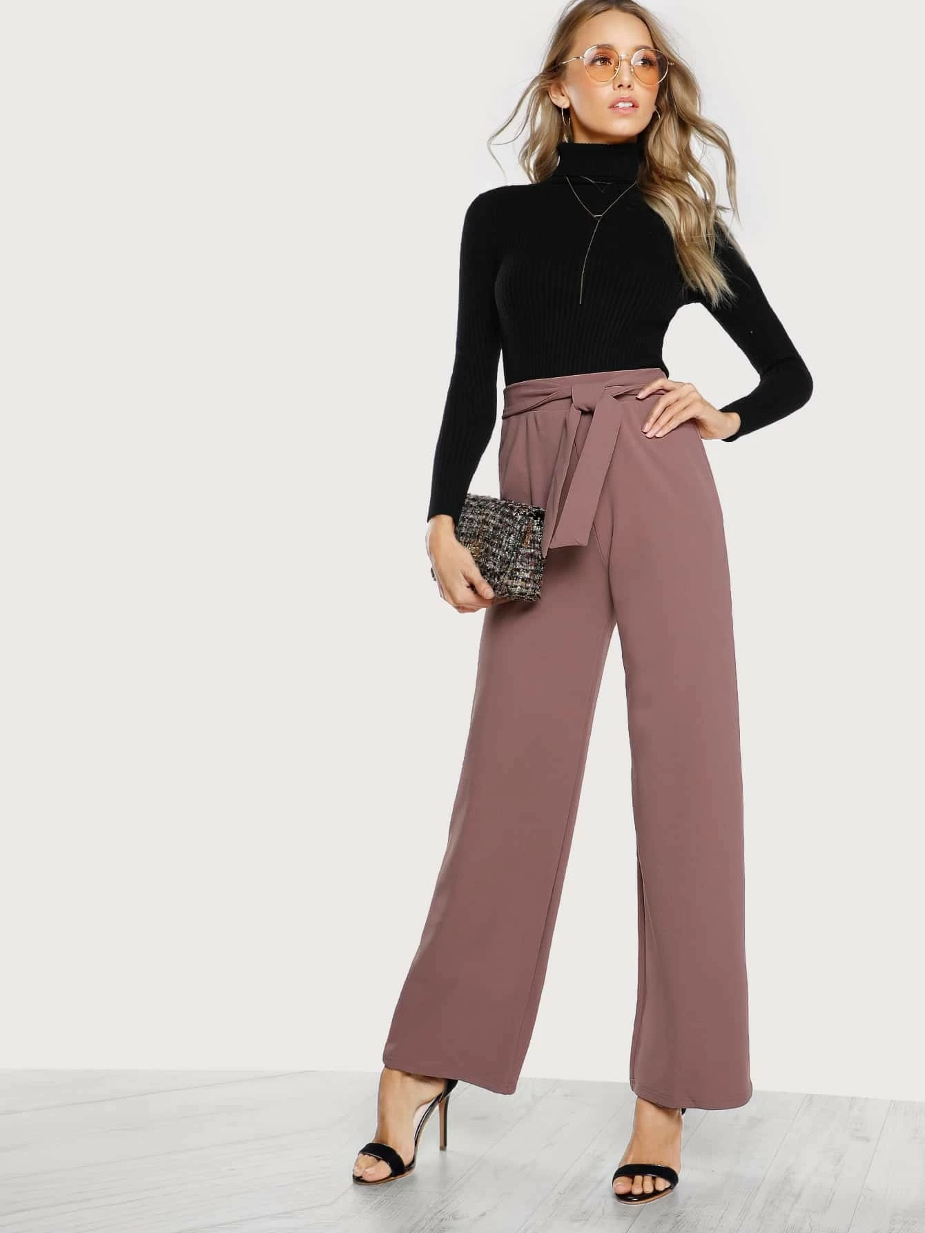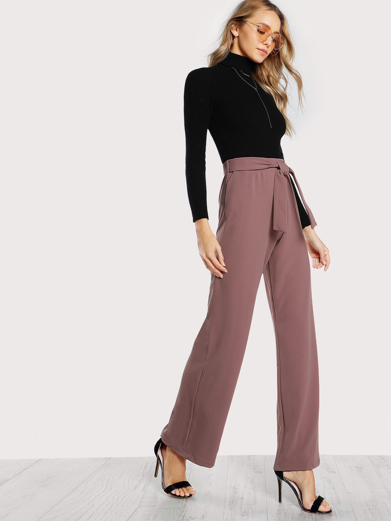 Self tie waist palazzo pants with top clearance, SHEIN Self Tie Waist Palazzo Pants clearance