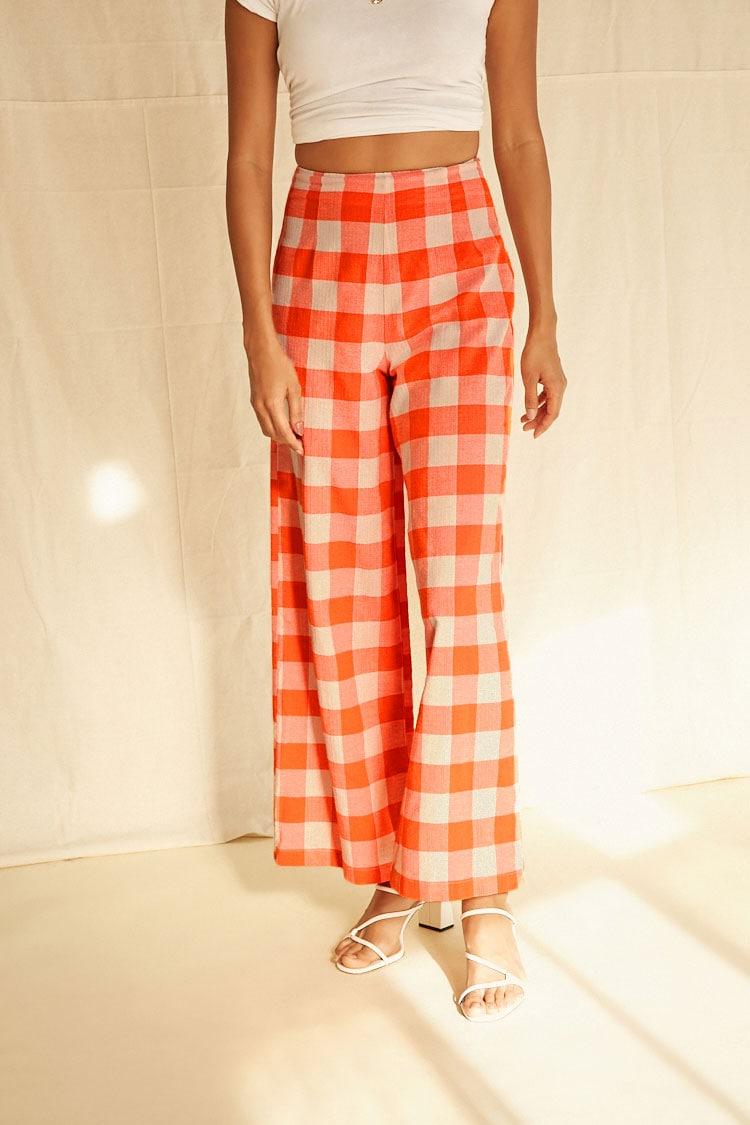Orange plaid pants clearance, I AM GIA POLARIS HIGH RISE PLAID PANTS clearance