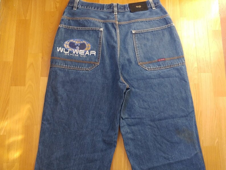 90s hip hop jeans clearance, WU WEAR jeans vintage hip hop baggy clearance