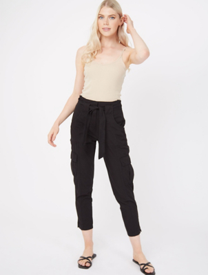 Womens black work trousers asda clearance, Black Poplin Woven Utility Trousers clearance