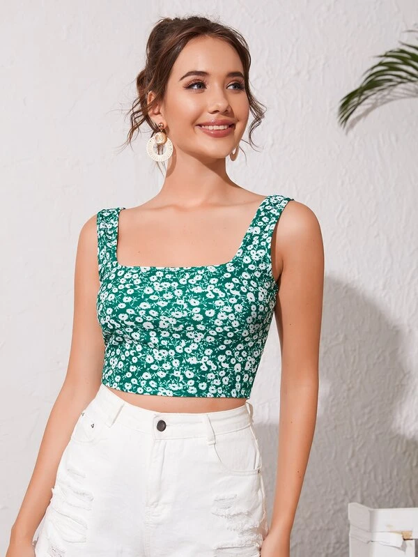 Floral crop tank top clearance