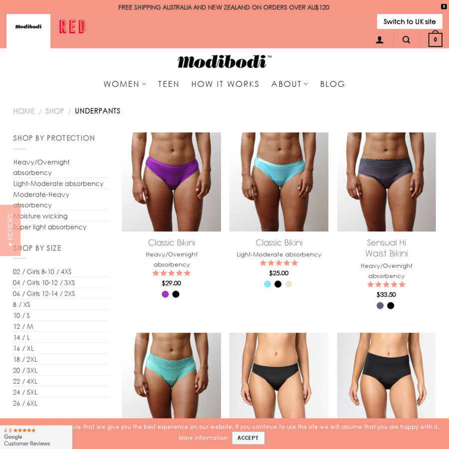 Modibodi shipping clearance, Period-Proof Undies @ Modibodi - OzBargain clearance