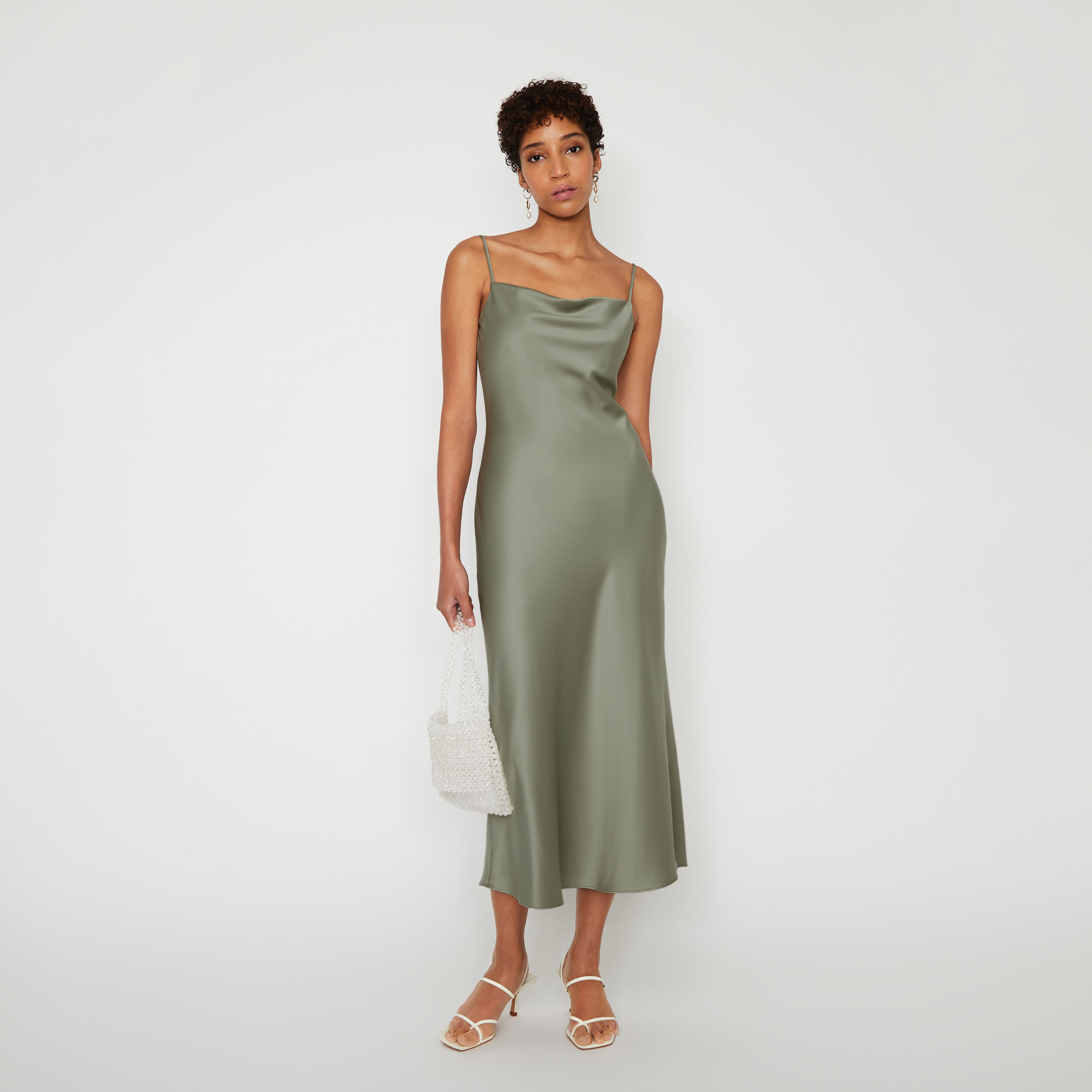 Warehouse satin dress clearance, Warehouse Satin Midi Dress, Brown at clearance