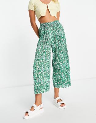 Floral print culottes clearance, ASOS DESIGN plisse culotte trousers clearance
