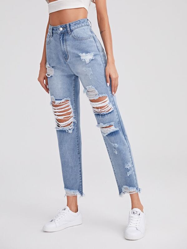 Ripped raw hem jeans clearance