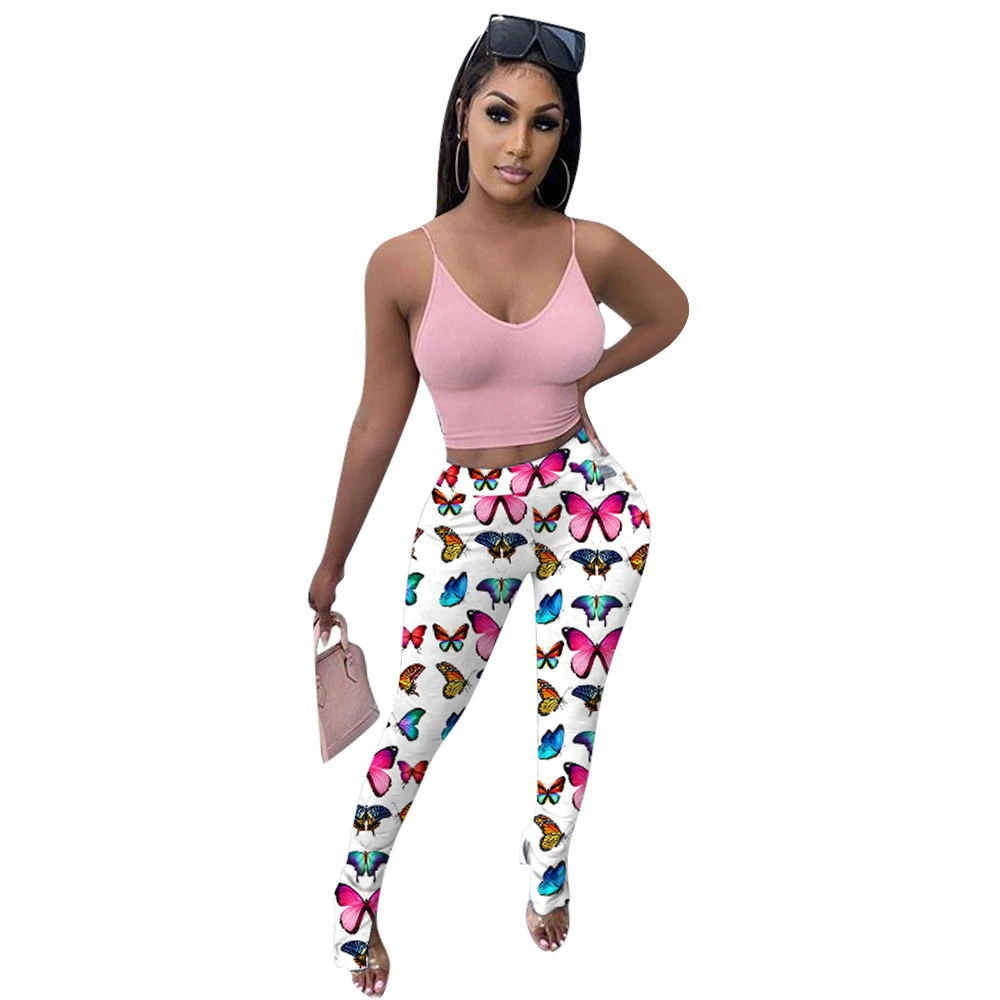 Butterfly stacked pants clearance, 2021 Women Stacked Pants Set Fashion clearance