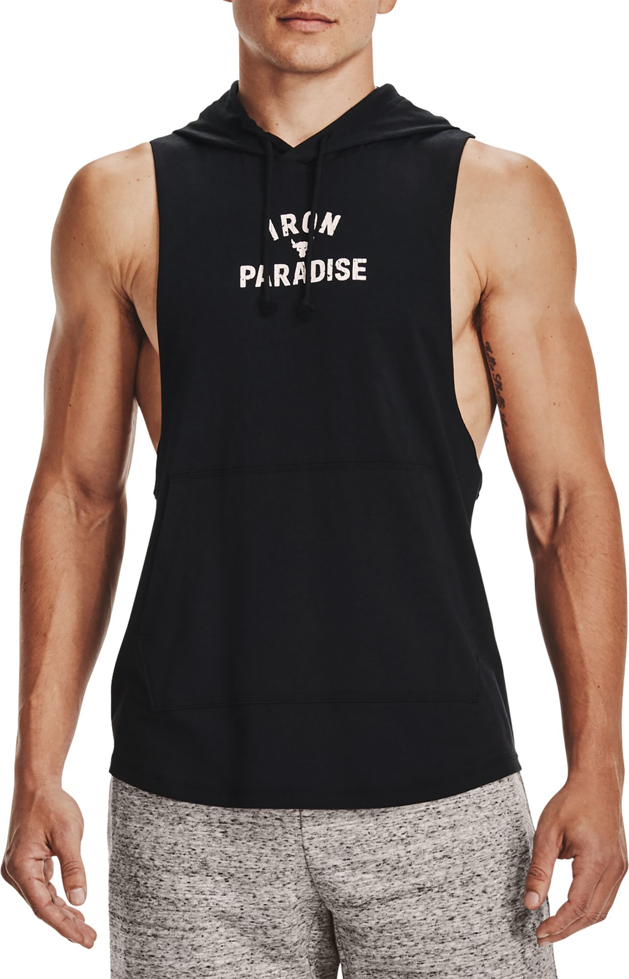 The rock sleeveless hoodie clearance, Men's Project Rock Terry Iron clearance