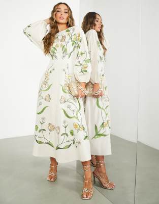 Asos midikleid clearance, ASOS EDITION – Midikleid in Grün mit Blumenmuster und perlenbesetzten Fransen clearance