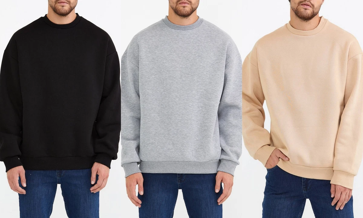 Basic sweatshirt herren clearance, Basic Sweatshirt Langarm Oversize Pullover Baumwolle Langarmshirt für Herren clearance