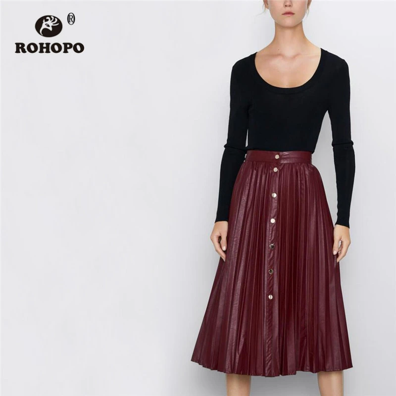 - Red leather pleated skirt shop
