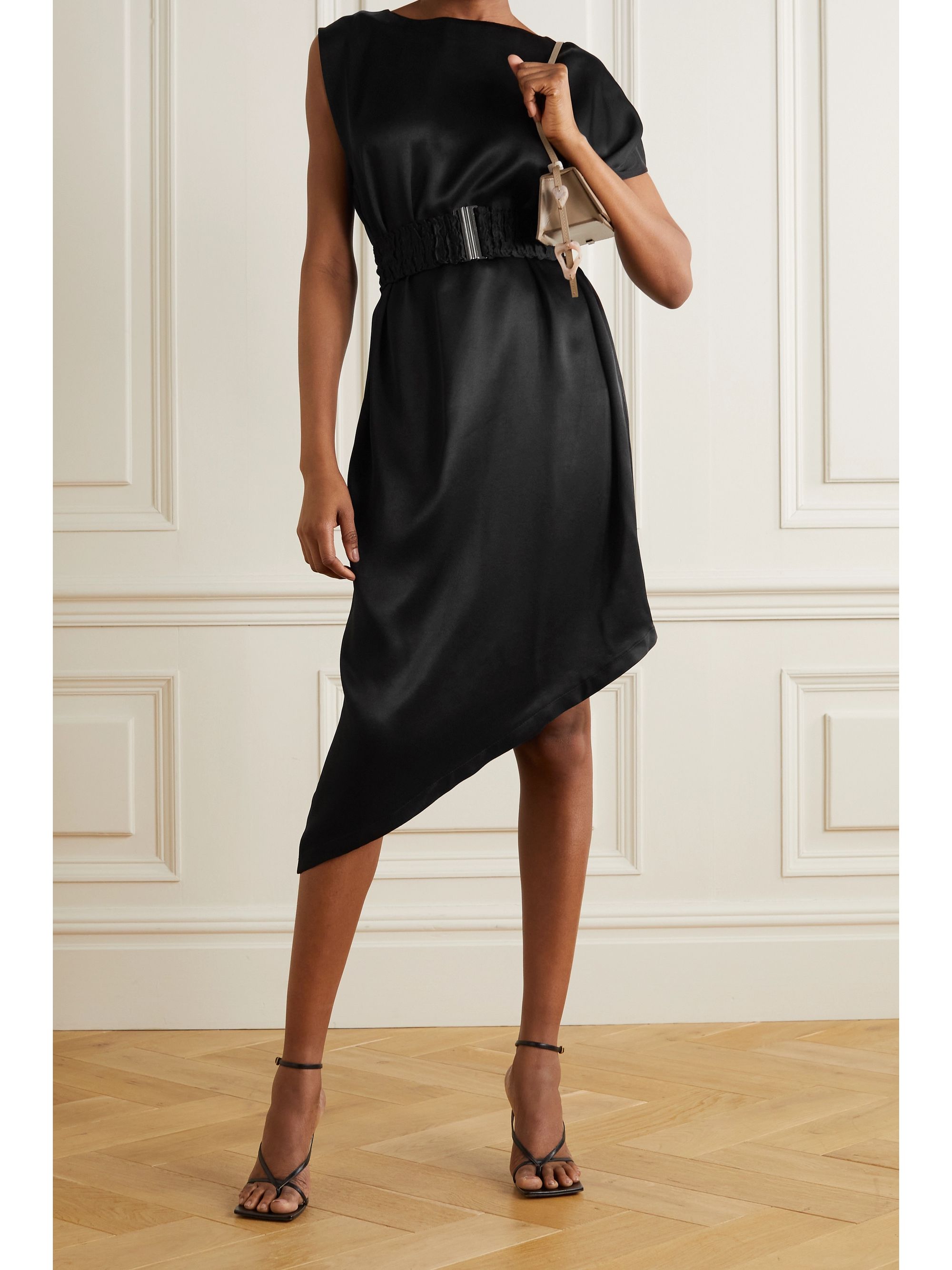 Belted satin dress clearance