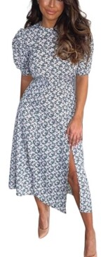 Ax paris daisy print midi dress clearance, Women's Cream Daisy Print Pleat Sleeve clearance